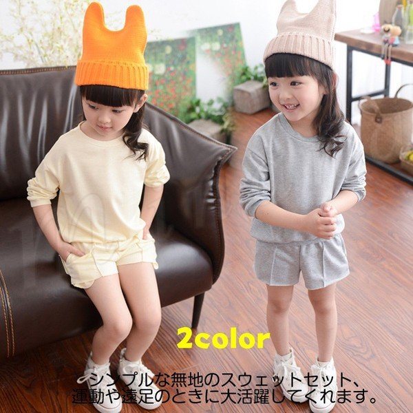 上下セットアップ スウェットトップス+ハーフパンツ 2点セットキッズ長袖ラウンドネック ハーフパンツ ランドネック動きやすい 運動着