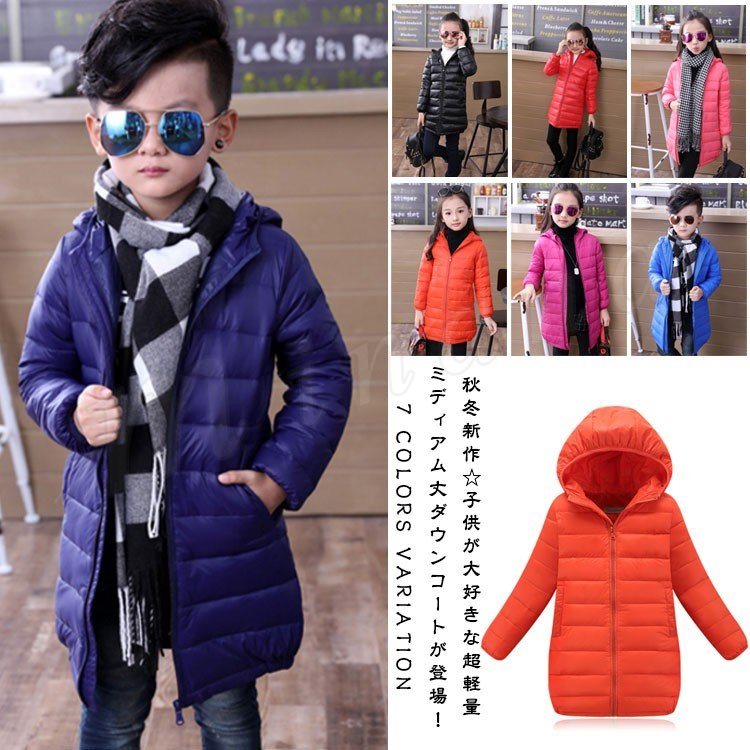 ダウンコート 子供 軽量ダウンジャケット 90%ダウン キルティングダウンコート フード付きダウン ミディアム丈ダウン 防寒 秋冬新作
