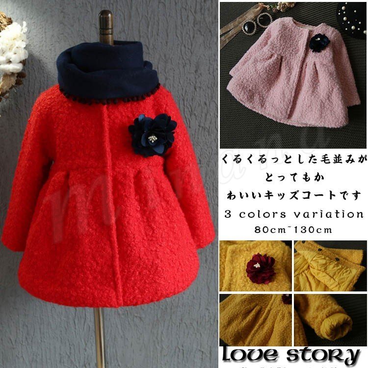 くるくるっとした毛並みがとってもかわいいキッズコート 女の子アウター ベビーコート ノーカラー スナップボタン 可愛い スウィート 立体感 ふ