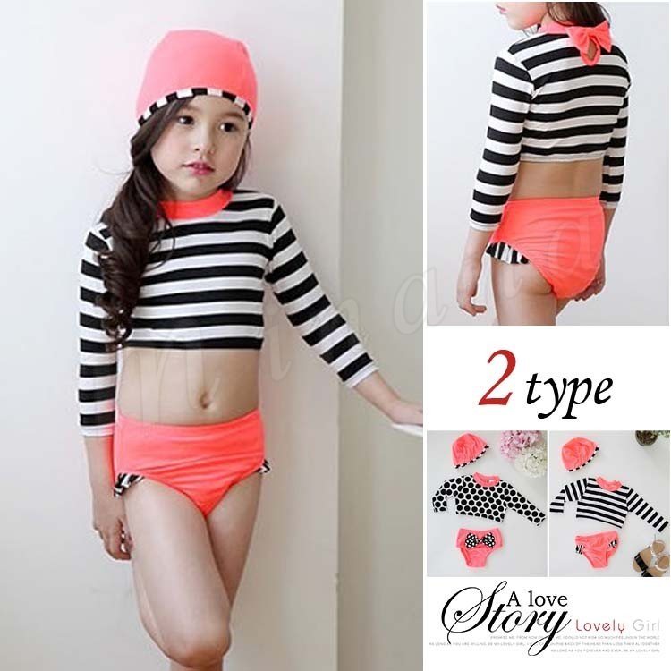 水着 女の子 子供 こども 女児 スイムウェア スクール プール ビーチ 夏 海水浴 ベビー タンキニ セパレート ボーダー 長袖 2点セッ