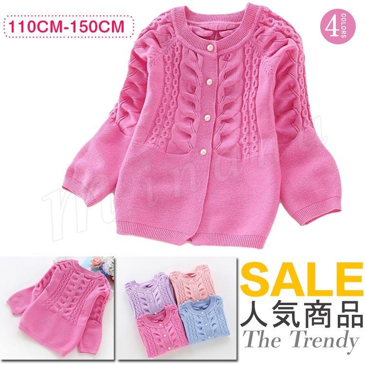 リボンとパールの縁どりが豪華で上品な色合いがポイント!パール付きニットカーディガン キッズ ニットカーディガン パール付き カーディガン ニ