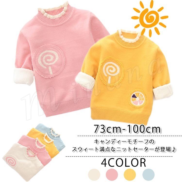 キャンディーモチーフのスウィート満点なニットセーターが登場♪ 女の子ニットセーター 子供服 ベビー服 プルオーバー 配色 フリル 可愛い スマ