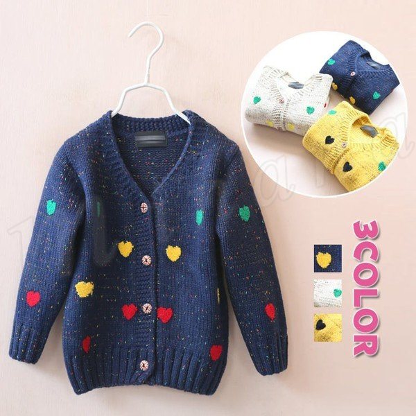 女の子 女児 ハート柄 カーディガン ニットカーディガン キュート 可愛い 長袖 カーディガン セーター 子ども キッズ ベビー ニットカー