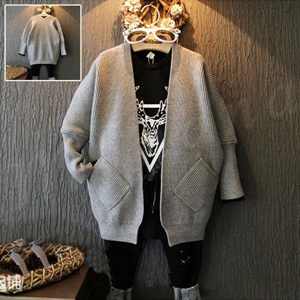 子供アウター 女の子 ニットカーディガン セーター ゆるニット ドルマンスリーブ 無地 ファション ケーブル編み ざっくり 長袖 ポケット