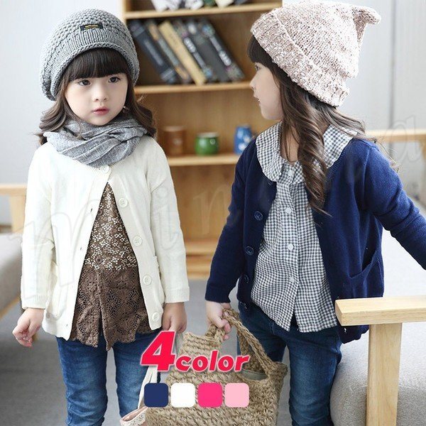 カーディガン 女の子 長袖 秋新作 女児 秋冬 コットン 無地 シンプル キッズ 厚地 ニット ニットカーディガン アウター お出かけ