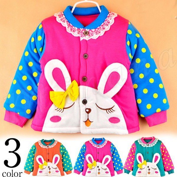 新生児 アウター 中綿入れコート 厚地 動物 カートーン キュート うさぎ リボン飾り ドット 水玉 レース飾り ショート丈 キッズ