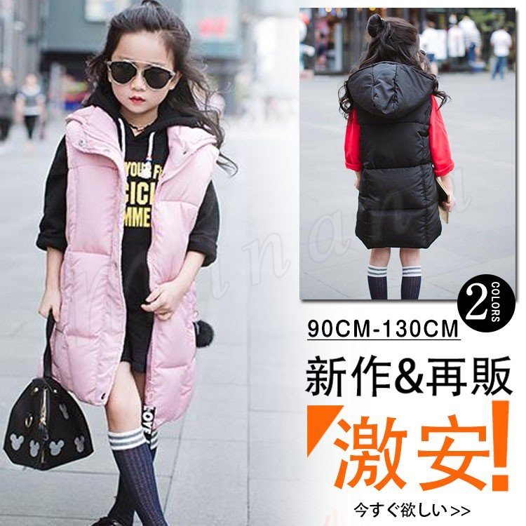 ロング丈 女の子 中綿ベスト ノースリーブ ジャケット ダウンベスト 子供服 中綿ジャケット 可愛い 子供コート 子供 キッズ コート アウ