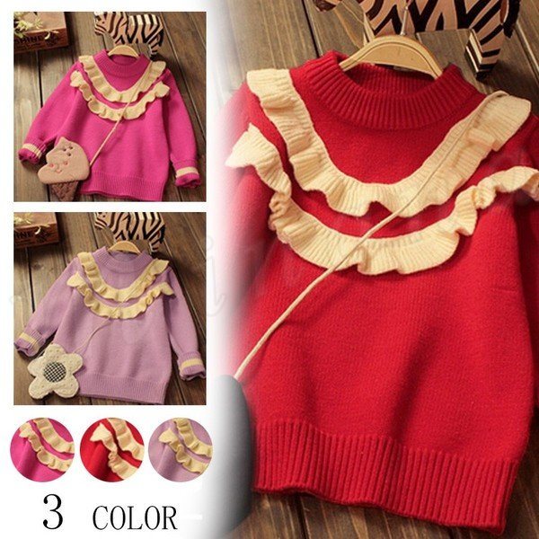 子供服 セーター ニットトップス パール付き 長袖ニット 無地 ニット ブラウス 2点セット