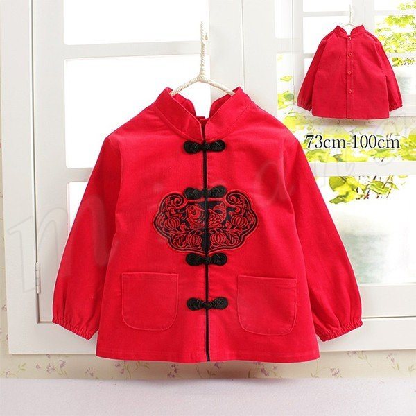 新生児 アウター チャイナ服 中国風 レッド お正月 出産祝い 長袖 バック開き コールテン素材 食事