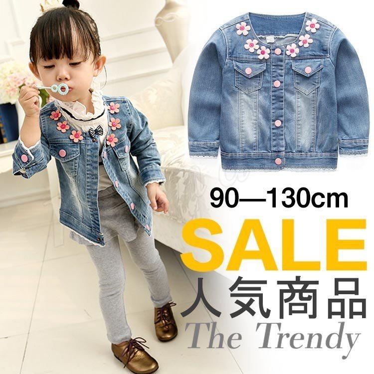 デニムジャケット Gジャケット ジージャン 長袖 花飾り 子供服 アウター トップス レース飾り ショートアウター ノーカラージャケ