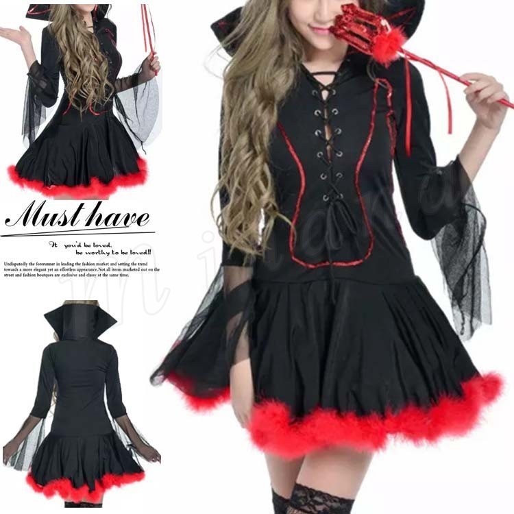 ハロウィン 小悪魔 3点セット コスプレ デビル レースアップ コスプレ コスチューム 仮装 衣装 魔女 ワンピース