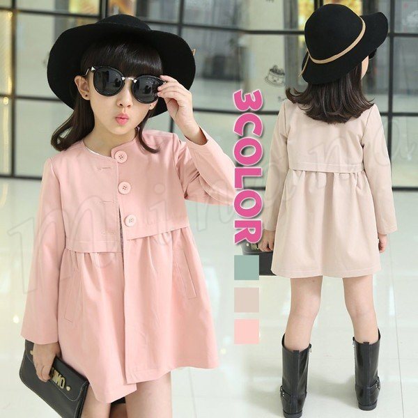 子供アウター 女の子 トレンチコート ロングコート 無地 シンプル ジャケット 膝丈 長袖 ランドネック
