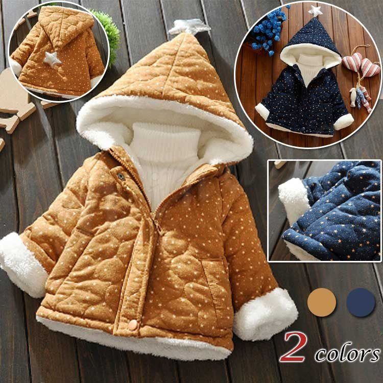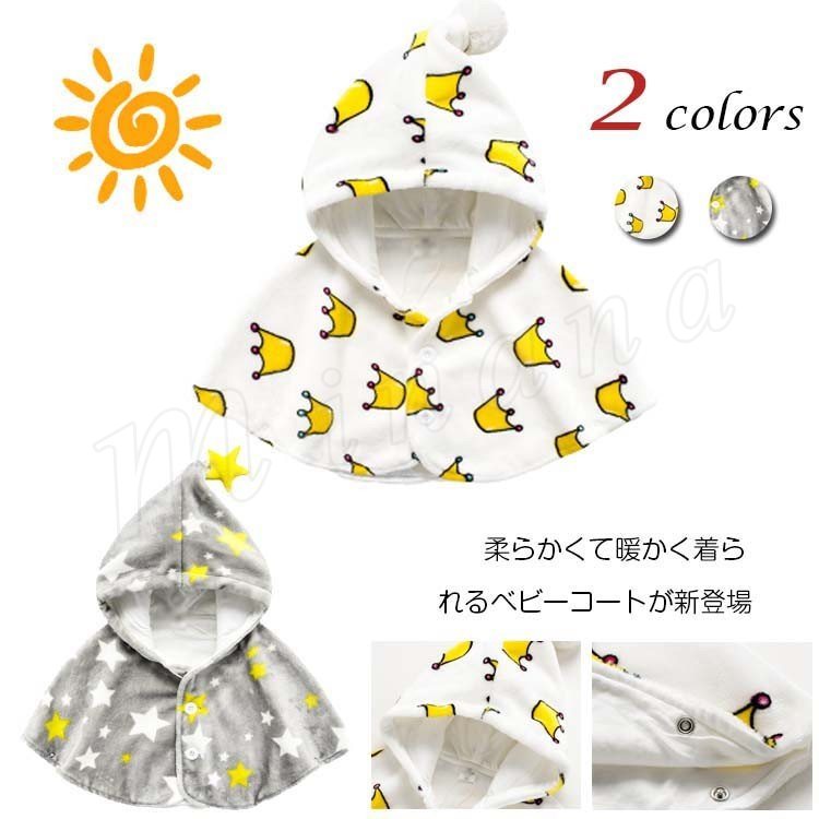 コート/ベビー/キッズ/赤ちゃん/女の子/男の子/キッズコート/ストール/フード付き/前開き/クラウン柄/星柄/ポンポン付き/スナップボタン/