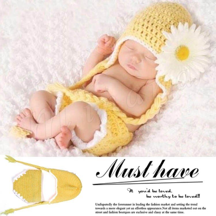 ベビーコスチューム お花付き 2点セット 寝相アート ベビー服 記念撮影 毛糸 ハンドメイド コスチューム 写真撮影用 誕生記念 赤ちゃん服