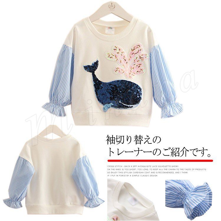 袖切り替え スウェットトレーナー 長袖 女の子 クルーネック 鯨 スウェット トレーナー レイヤード風 プルオーバー パーカー パーカ 子供服 キッズ