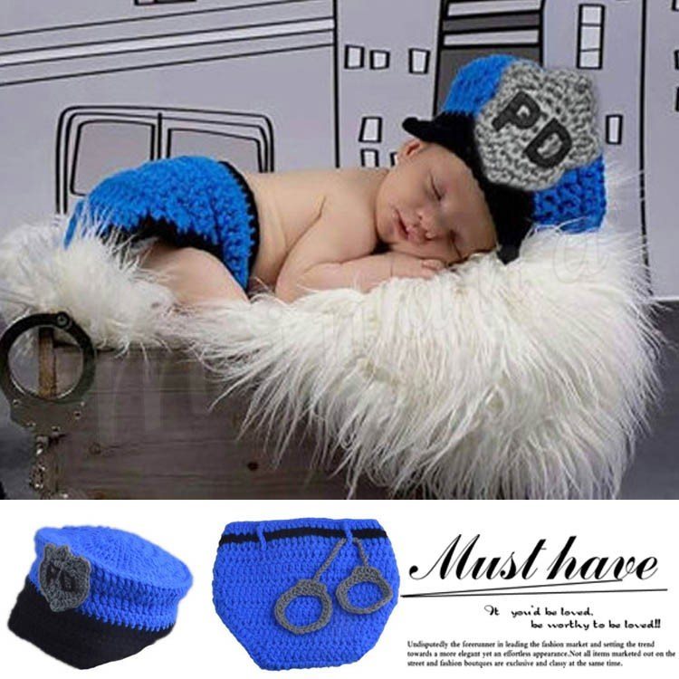 ベビーコスチューム ポリス 警察官コスプレ2点セット 寝相アート ベビー服 記念撮影 毛糸 ハンドメイド コスチューム 写真撮影用 誕生記念
