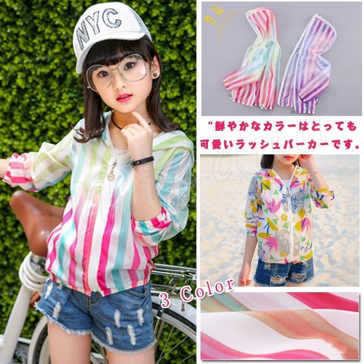 UVカット ラッシュガード ライトアウター 女の子キッズ 紫外線防止 日焼け止め 冷房対策 UV CARE 子供 ストライプ 花柄 速乾性 軽
