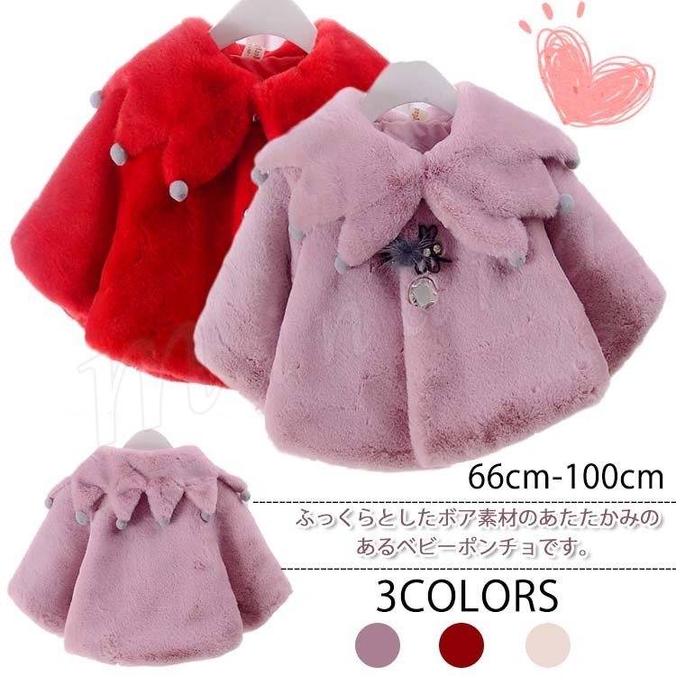 女の子 ポンチョ コート ファー 子供服 マント コート 子供 キッズ 可愛い 毛皮コート ファーコート フェイクファー 子供服 発表会 入