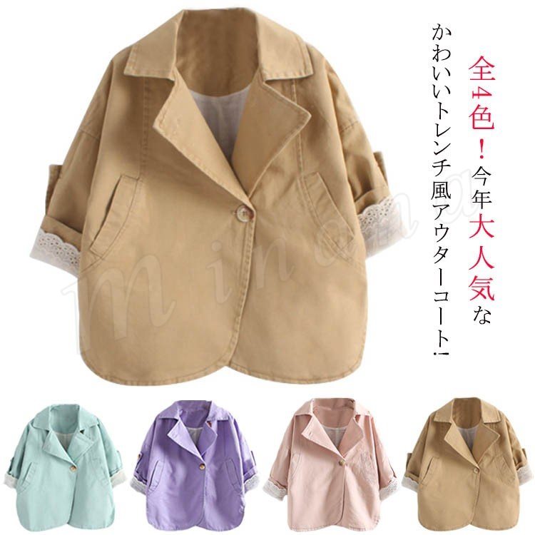 2018秋新作 女の子 アウター コート ワンボタン トレンチコート トレンチ 7分袖 ジャケット 子供服 かわいい キッズ 子ども 通学 通園 10