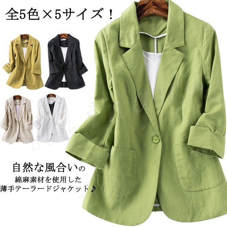 全5色×5サイズ!サマージャケット レディース リネンジャケット テーラードジャケット 七分袖 ショート丈 綿麻 アウター ジャケット 上品 春夏