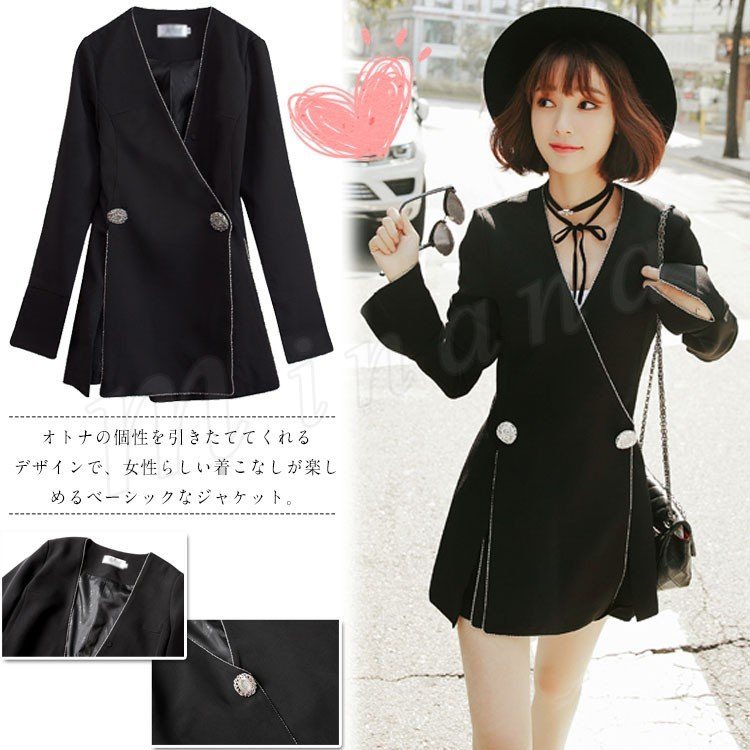 テーラードジャケット レディース ロングテーラードジャケット ノーカラージャケット ショート丈 通勤 カジュアル アウター コート