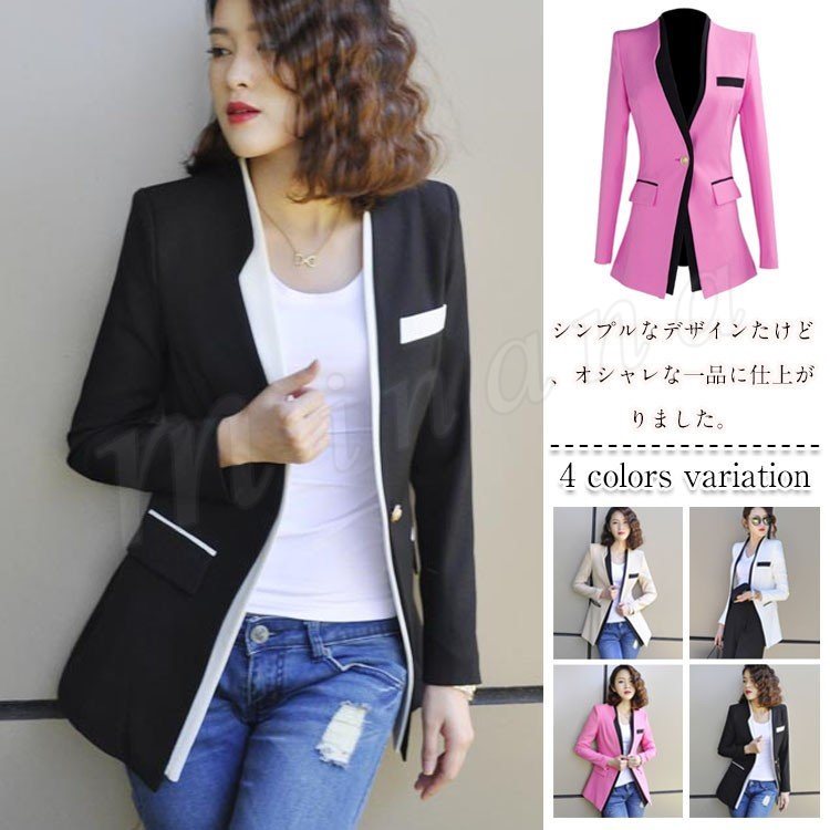 テーラードジャケット レディース ロングテーラードジャケット ノーカラージャケット ショート丈 春アウター コート