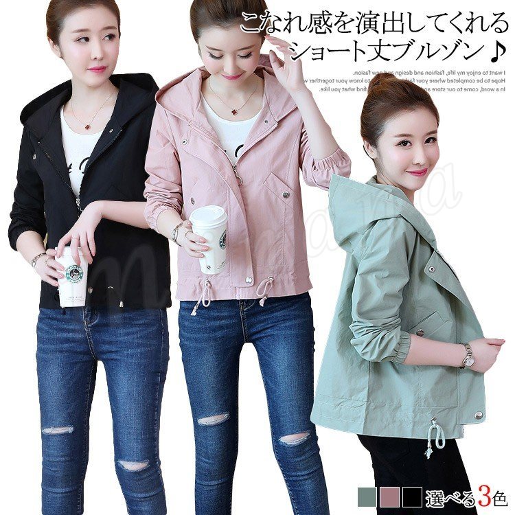 [3色展開]中綿入り/中綿なし ショート丈モッズブルゾン レディース アウター ライトアウター ブルゾン トップス 秋 冬 長袖 フード付き 無地 大
