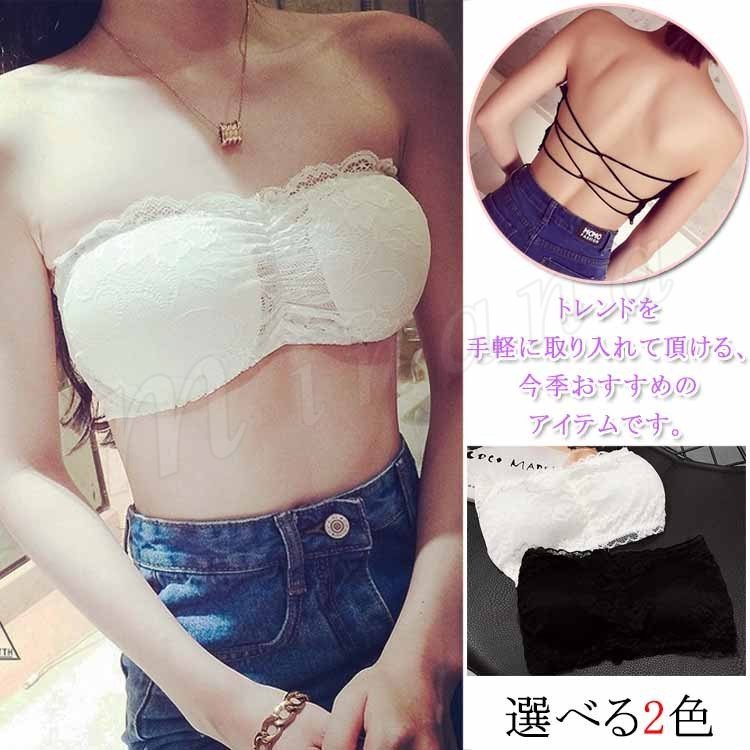 レディース ブラトップ チューブトップ レース 見せブラ ベアトップ カップなし 可愛い 2点セット