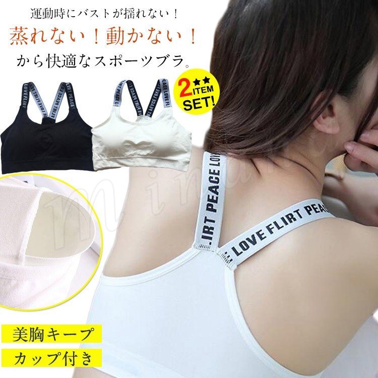 スポーツブラ 2枚set キャミブラ ハーフブラ ナイトブラ 盛り ブラ 美胸キープ ノンワイヤーブラ カップ付き インナー ヨガウエア レ