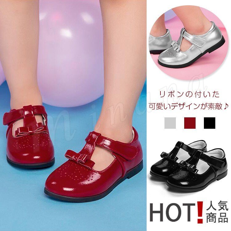 ストラップ付き エナメル リボンシューズ レザーシューズ フォーマルシューズ 女の子 結婚式 発表会 フォーマル キッズ 子供 シューズ 子
