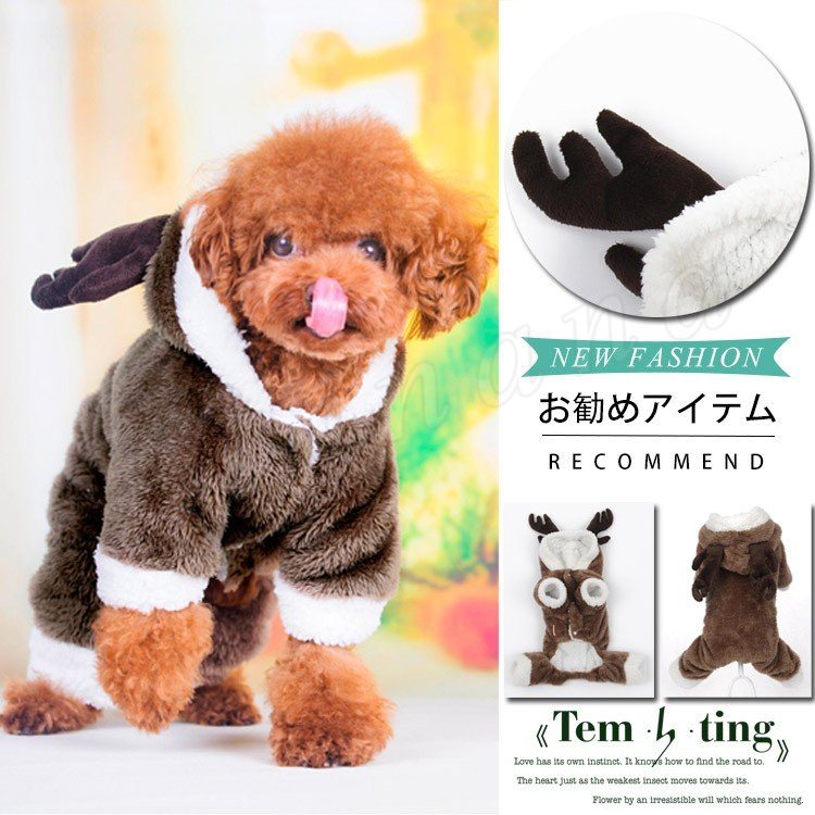 難あり 犬 服 犬服 小型犬 クリスマスウエア トナカイ 着ぐるみ カバーオール つなぎ ドッグウエア コスプレ XS S M L XL