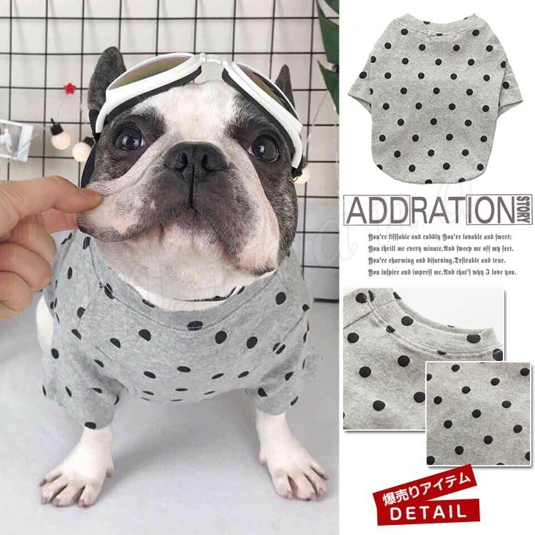 犬 服 犬服 小型犬 水玉 ドット Tシャツ ドッグウエア XS S M L XL グレー