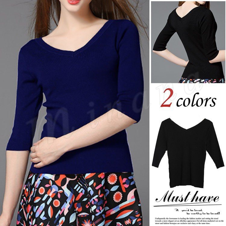 ニット Uネック レディース トップ ニット セーター トップス 修身 レディースファッション ショート丈 トップス 七分袖 無地