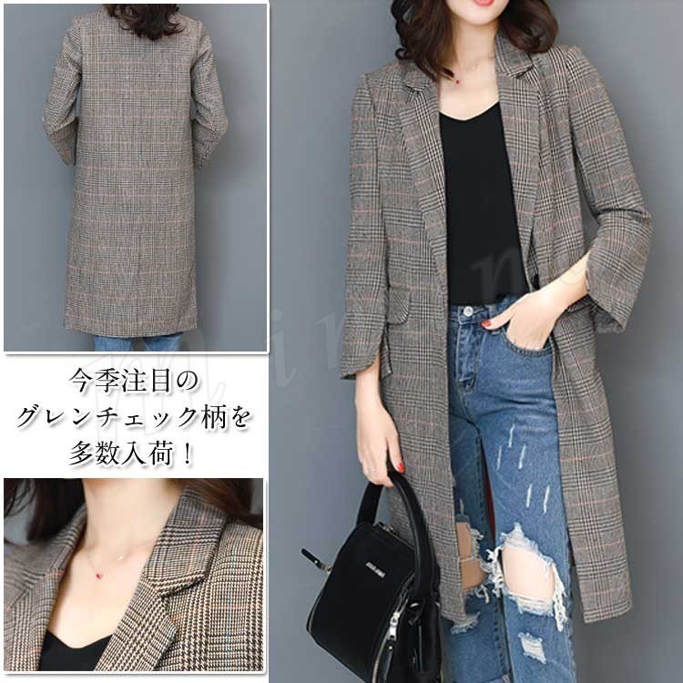 グレンチェック ジャケット チェスターコート おじ おじ柄 シングル アウター 羽織り ロング コート ウール あったか 防寒 シンプル レデ