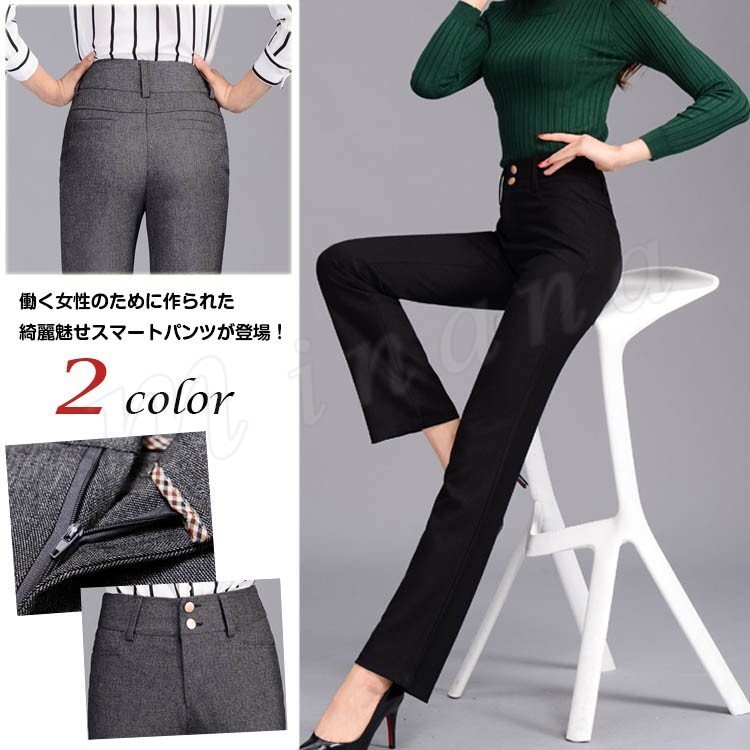 レディーススーツパンツ スラックス ロングパンツ ハイウエスト ビジネススーツパンツ 大きいサイズ ストレートパンツ オフィス 通勤 OL