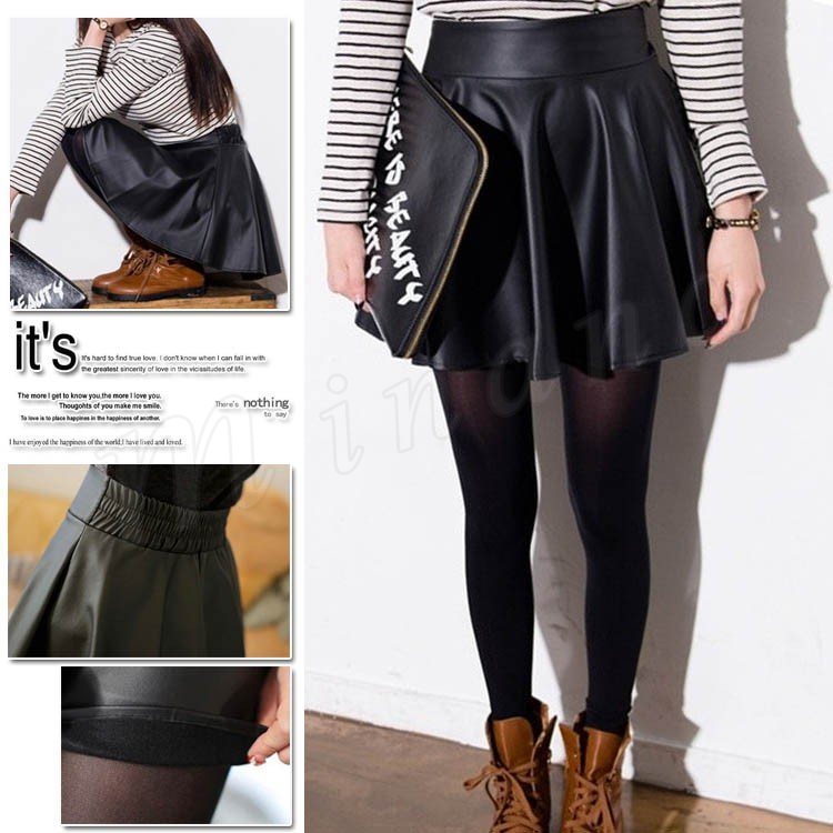 2017 スカート レディース プリーツスカート レザースカート ミニ丈 Aライン 無地 新作