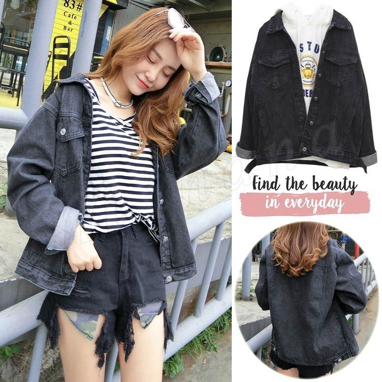 デニムジャケット レディース gジャン 大きめ ゆったり ドロップショルダー チャコールグレー 春 アウター ショート丈 ジージャン トップス