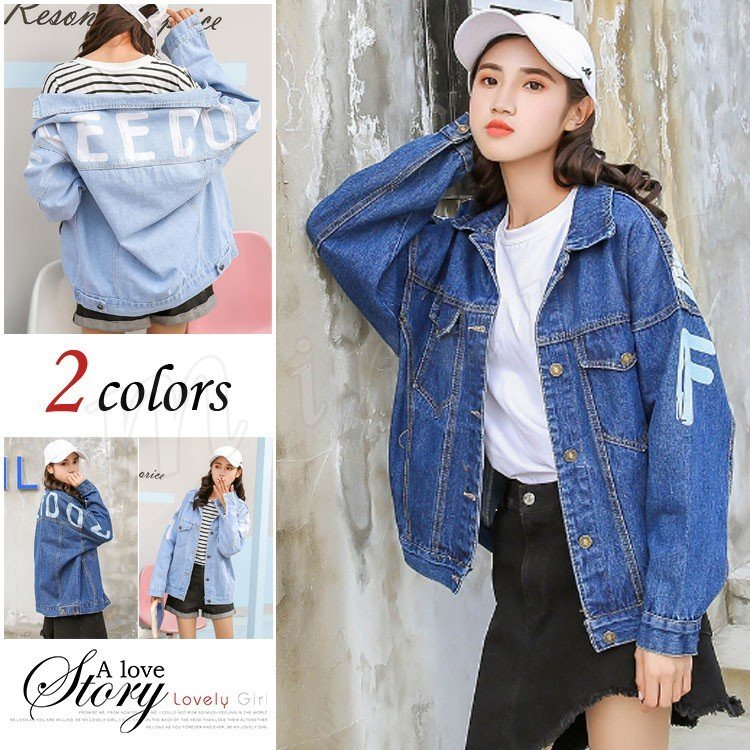 デニムジャケット レディース 長袖 Gジャン 英字プリント カジュアル アウター スプリングコート トップス ゆったり おしゃれ 春秋