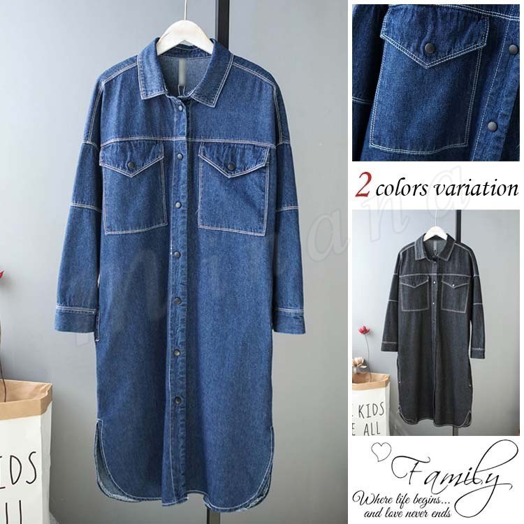 ロング丈 デニムジャケット デニムコート レディース デニム トレンチコート Gジャン ロング ジージャン マニッシュ ボーイフレンド風
