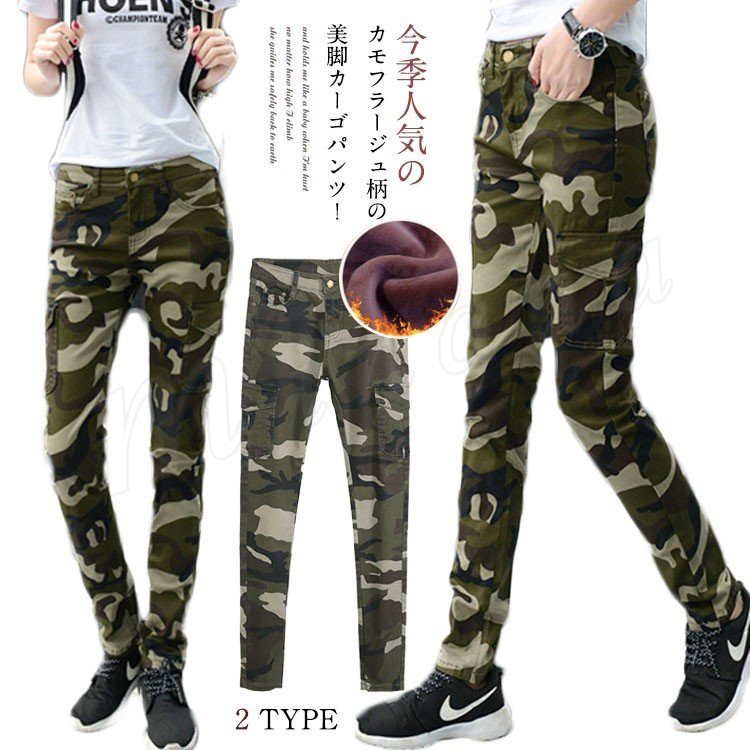 ワークパンツ カーゴパンツ レディース 迷彩柄カーゴパンツ カモフラ柄 スキニーパンツ スキニー ロングパンツ カモフラージュ レディース スリム 迷