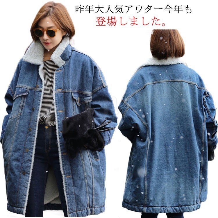 昨年も今年も大人気!デニムジャケット ロングコート レディース ジージャン 裏ボアデニムジャケット ロング丈ジャケット ロングデニムコート 裏ボアコ