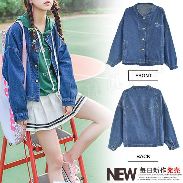 スタンドカラー デニムジャケット ジージャン デニム ジャケット シンプル アウター Gジャン gジャン ライトアウター 秋 レディース
