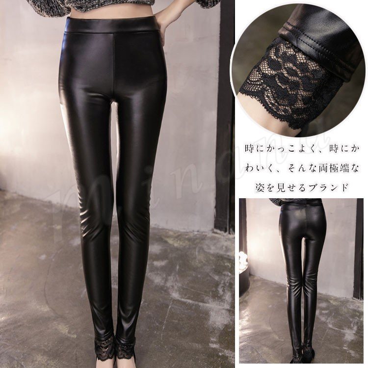 レディース ボトムス レギンス レース フェイクレザーパンツ スキニー 裏起毛 パギンス ストレッチ 美脚美尻 ウェストゴム