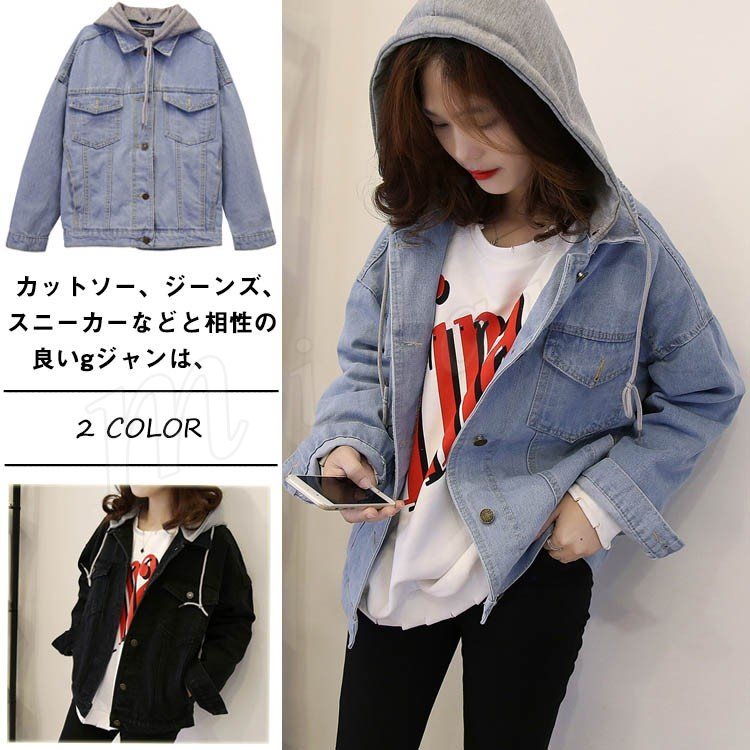 デニムジャケット レディース フード(取り外し可) gジャン 大きめ ゆったり ドロップショルダー 春 アウター ショート丈 ジージャン トッ