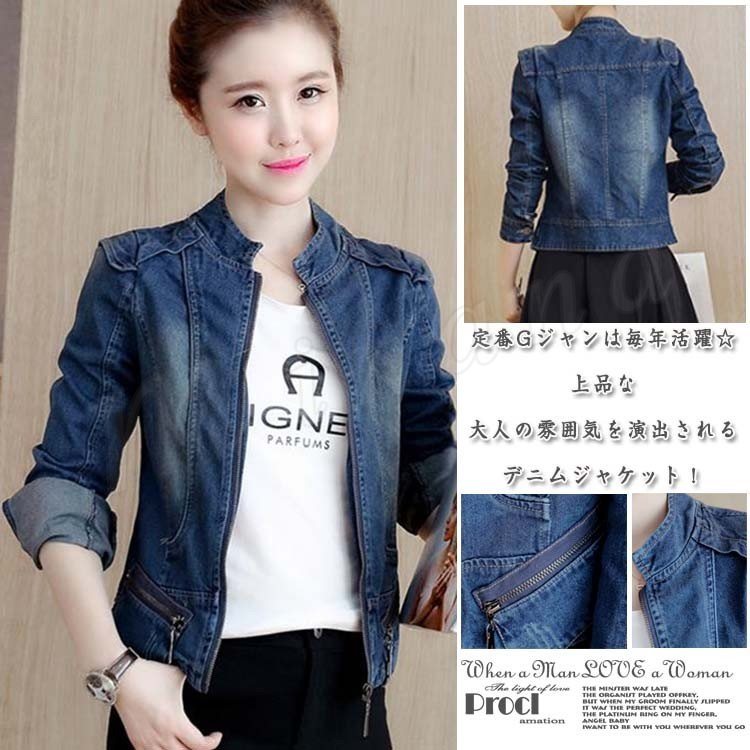デニムジャケット Gジャン 立ち襟 レディース ジージャン ジャケット ライトアウター きれいめ ヴィンテージ調 スリム 通勤 通学 春物