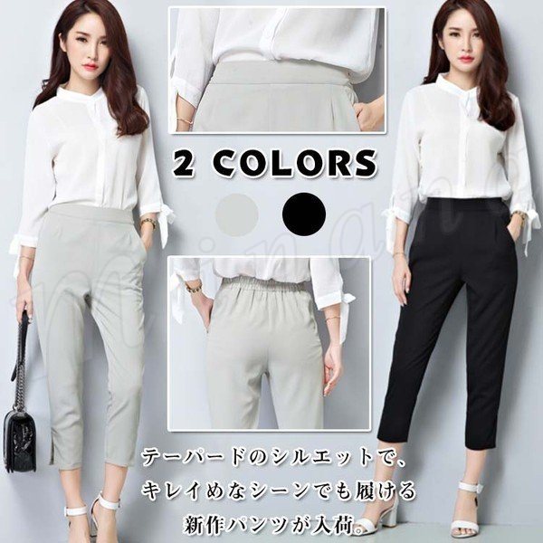 [2色]テーパードパンツ レディース アンクル丈 チノパンツ テーパード ボトムス パンツ きれいめ オフィス 通勤 クロップドパンツ 9分丈 女子