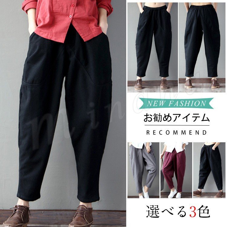 テーパードパンツ サルエルパンツ 綿麻素材 9分丈 レディース ボトムス 新作