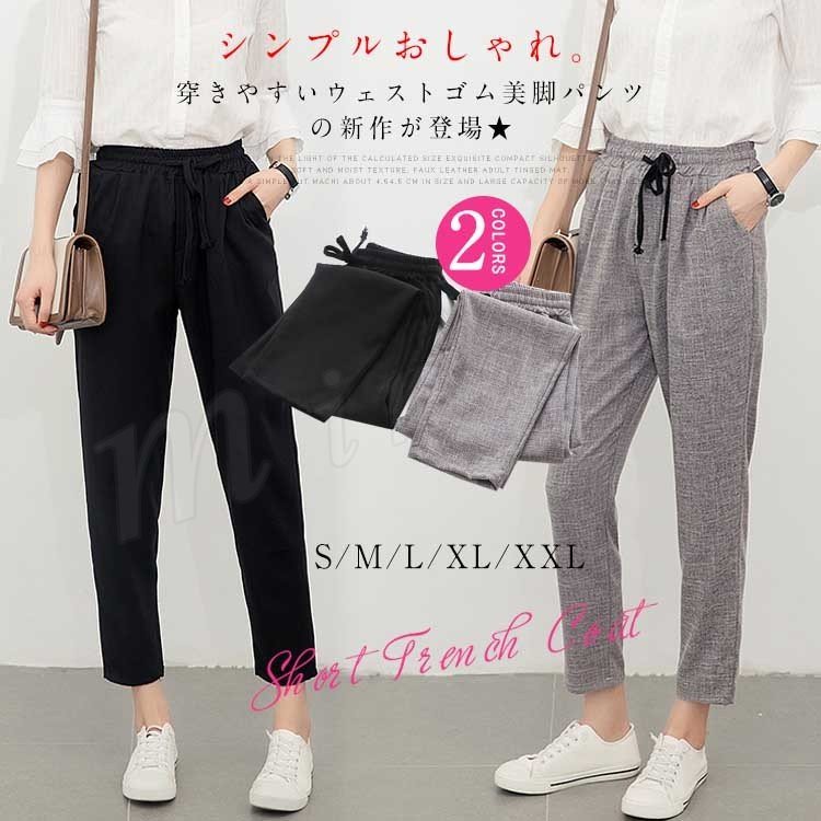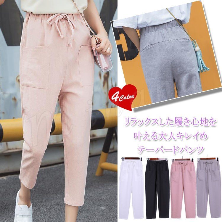 夏 九分丈パンツ テーパード パンツ リネンパンツ レディース ボトムス 綿麻パンツ 9分丈 ウエストゴム イージーパンツ カジュアル ゆった