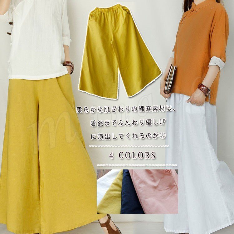 綿麻 ワイドパンツ 9分丈 リネンパンツ リラックス パンツ リネン ガウチョパンツ ロングパンツ リラックスパンツ 綿麻 パンツ サルエルパ