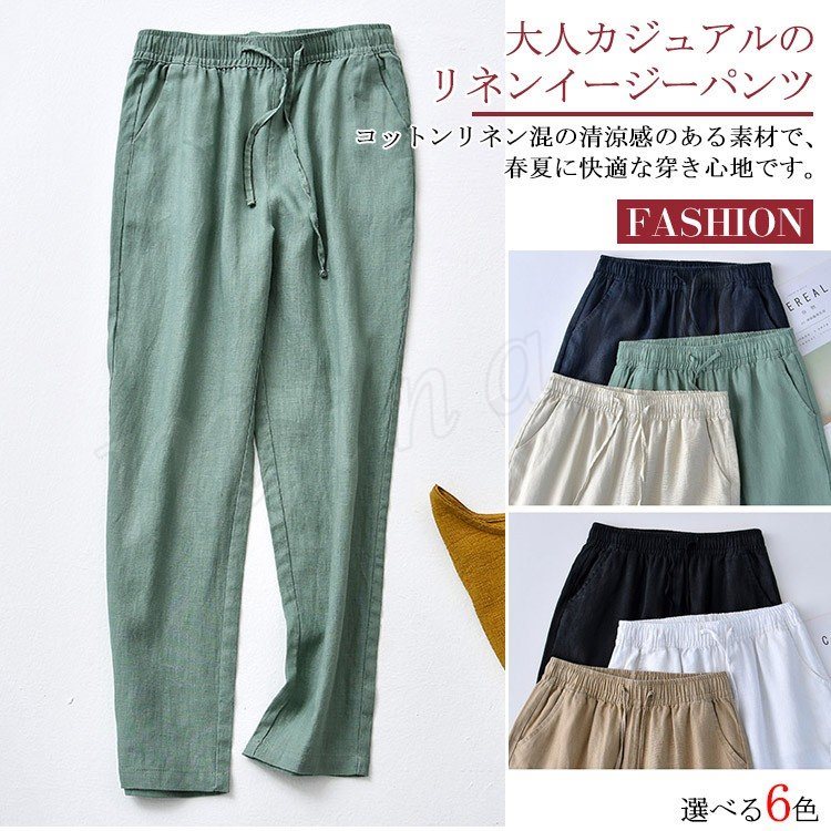 全6色!リネンパンツ レディース ボトムス 綿麻 綿麻パンツ イージーパンツ サルエルパンツ シンプル カジュアルパンツ ウエストゴム 無地